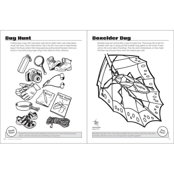 This insect- and spider-themed coloring book includes educational content as well as interactive activities such as mazes and word finds.