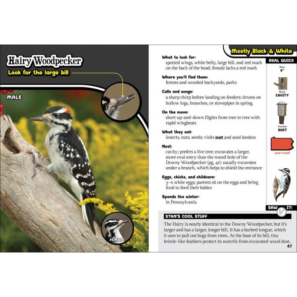 Stan Tekiela's famous Birds of Pennsylvania Field Guide has been delighting bird watchers for years. Now, the award-winning author has written the perfect bird identification guide for children! The Kids' Guide to Birds of Pennsylvania features 86 of the most common and important birds to know, with species organized by color for ease of use. Do you see a yellow bird and don't know what it is? Go to the yellow section to find out. Each bird gets a beautiful full-color photograph and a full page of neat-to-know information (such as field marks, calls/songs, a range map, and Stan's cool facts) that make identification a snap. Fun bonus activities for the whole family, like building a birdhouse and preparing your own bird food, make this the perfect introduction to bird identification for a new generation in the Keystone State!