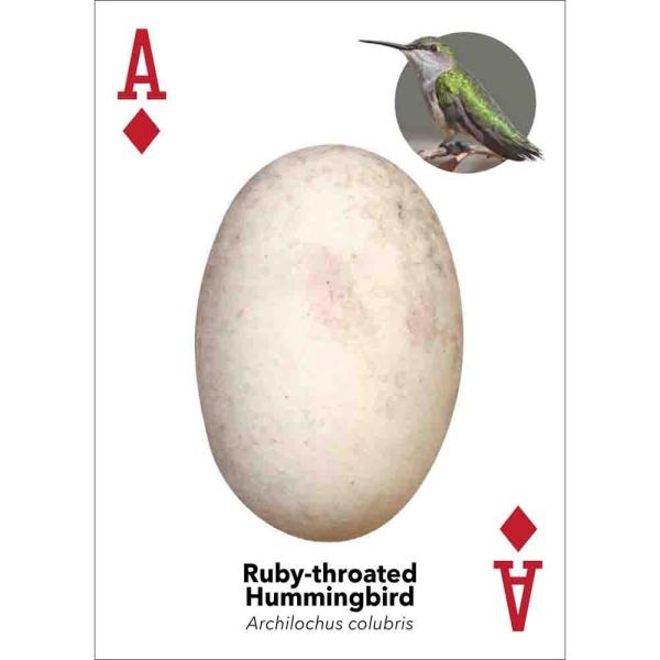 Anyone who enjoys nature, wildlife, and birding will love these cards for playing your favorite games or to use as flash cards. Inspired by Adventure Publications' popular birdwatching guides, this gorgeous deck of playing cards features professional photographs of 54 of the most notable types of bird eggs across the United States, Canada, and parts of Mexico. Suits are organized by where the birds most commonly nest, and each card depicts full-color photographs of such bird eggs as the American Goldfinch, Common Loon, Northern Cardinal, and more—so you can begin to learn what the eggs of 54 different species look like.