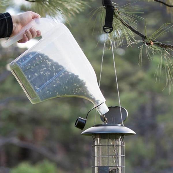 Part of our SureFill No Spill family- an innovative way to make bird feeding easy! The Tote has a 5 lbs. capacity, locking cover to seal tote and protect against infestation. It also stacks for efficient storage, has an easy grip handle for comfortable carrying and a tapered pour spout to fill feeder with no spillage or waste.