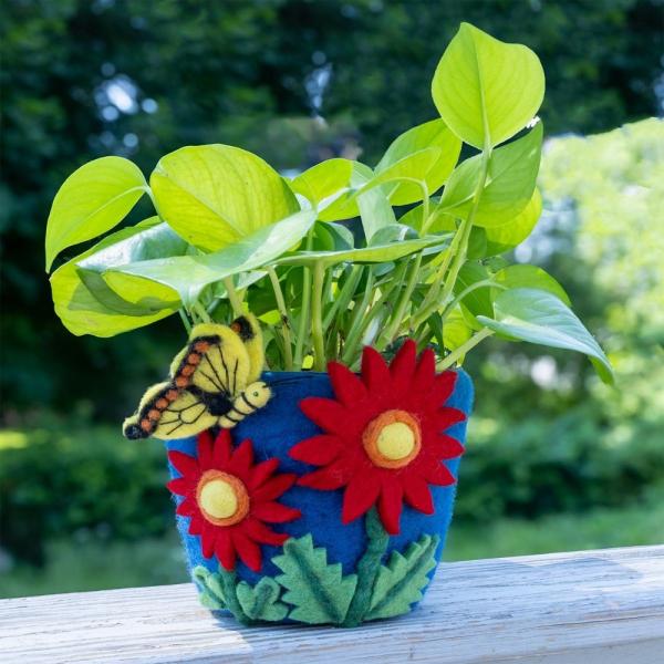 This playful woolen pot can hold all kinds of things, including potted plants up to 5.5"dia. It is made by skilled artisans working in a fair trade production center in Kathmandu, Nepal. Water will wick through the natural wood fibers so be sure to place a dish inside or outside the planter if used indoors. However, wool breaths and will also dry out naturally. Don't miss the cute little tail at back! Comes with our attractive Fair Trade Home & Garden tag.