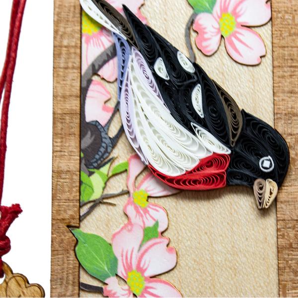 Quilling is an art form that involves the use of strips of paper that are rolled, shaped, and glued together to create decorative designs. The paper is wound around a quill to create basic coil shapes. The paper is then glued at the tip and these shaped coils are arranged to form flowers, leaves, and various ornamental patterns. All Poppin Cards & Gifts bookmarks are handcrafted, taking approximately one hour to make each one. They truly are a piece of art!