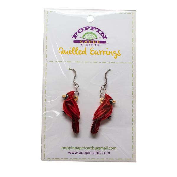 Quilling is an art form that involves the use of strips of paper that are rolled, shaped, and glued together to create decorative designs. The paper is wound around a quill to create basic coil shapes. The paper is then glued at the tip and these shaped coils are arranged to form flowers, leaves, and various ornamental patterns that you find in our cards. All Poppin Cards & Gifts earrings are handcrafted, they truly are a piece of art!