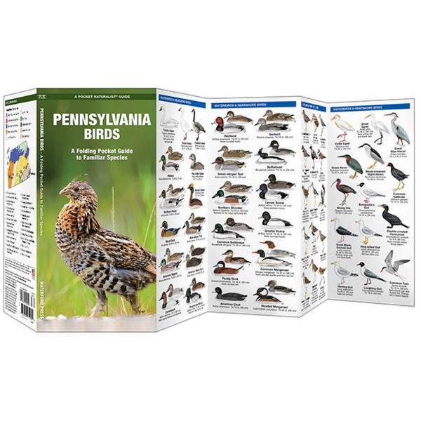 Pennsylvania Birds is a pocket reference guide printed on laminate material and folded for easy storage and retrieval. Color illustrations of common bird species and an inset map of popular Pennsylvania bird sanctuaries, helps to make this a must-have.