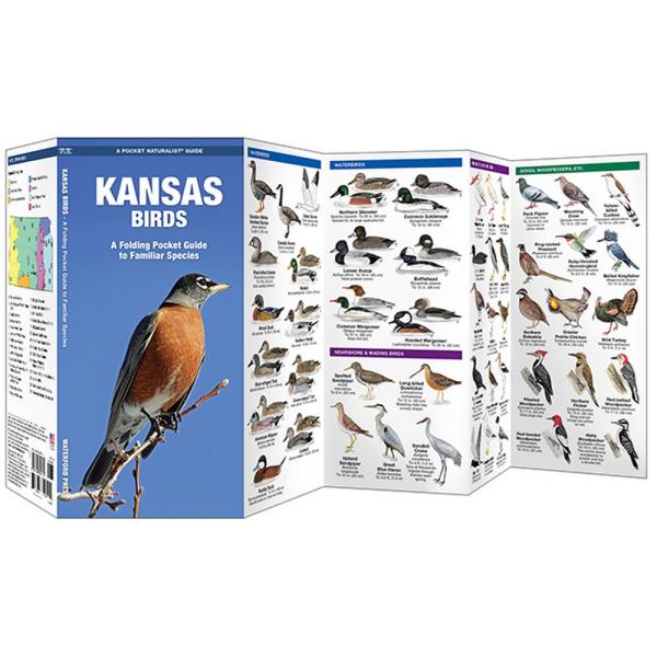 This pocket-sized, folding Pocket Naturalist guide highlights the most commonly seen birds in Kansas. Kansas Birds is laminated for durability and folds for portability. Richly detailed illustrations and a map of popular bird sanctuaries found in Kansas included.