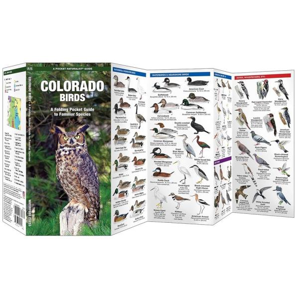 Colorado Birds is a pocket-sized, folding naturalist guide. Distinctive colorful illustrations highlight the most commonly seen birds in Colorado. Printed on laminated material for durability, these handy guides are a great source of portable information.