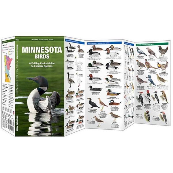 Minnesota Birds is a pocket reference guide printed on laminate material and folded for easy storage and retrieval. Color illustrations of common bird species and an inset map of popular Minnesota bird sanctuaries, helps to make this a must-have companion.