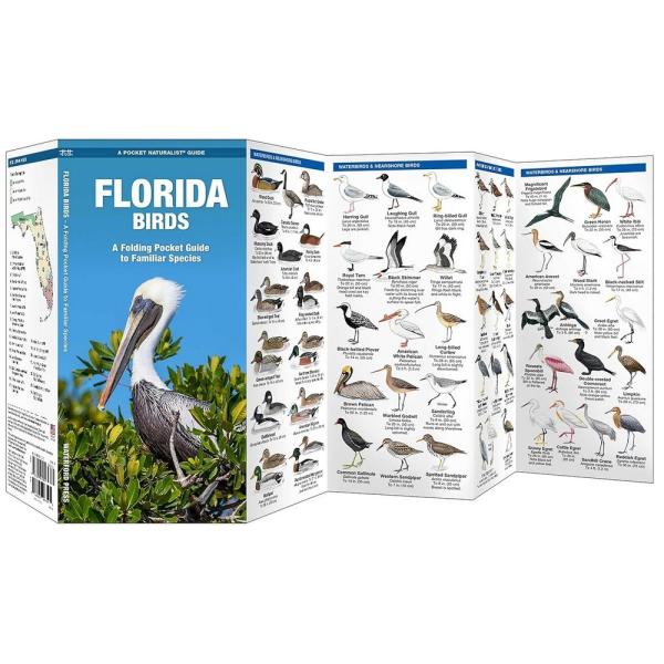 Florida Birds is a pocket-sized, folding Pocket Naturalist guide highlighting the most commonly seen birds in Florida. Laminated for durability, these handy guides are a great source of portable information in the backyard or out in nature.