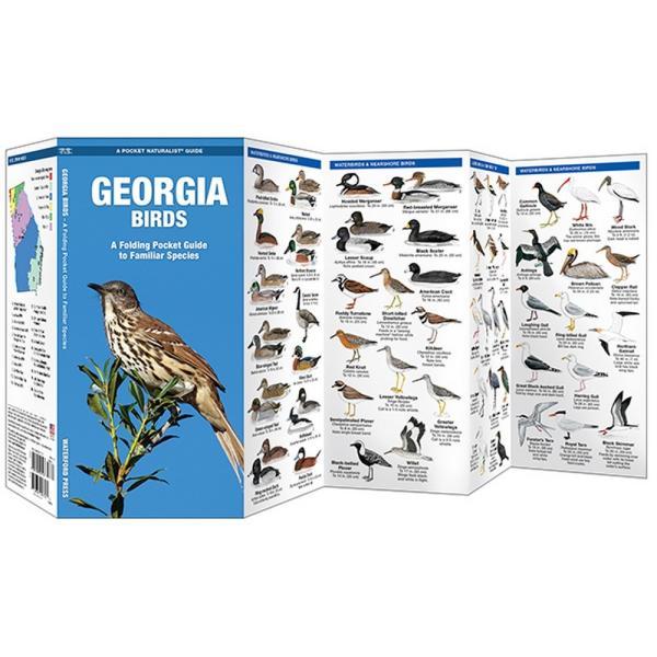 Georgia Birds is a pocket-sized, folding Pocket Naturalist guide highlighting the most commonly seen birds in Georgia. Laminated for durability, these handy guides are a great source of portable information for the backyard birdwatcher or the avian enthusiast.