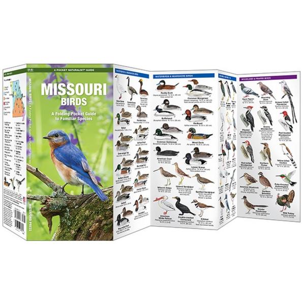 Missouri Birds is a portable reference guide featuring the most commonly seen birds in Missouri. This pocket-sized, folding guide is printed on laminate material and can be easily carried in the field. A state map highlights birding sanctuaries.
