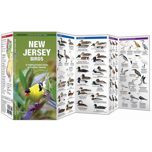 New Jersey Birds is a pocket-sized, folding Pocket Naturalist guide highlighting the most commonly seen birds in New Jersey. Laminated for durability, these handy guides are a great source of portable information in the backyard or out in nature.