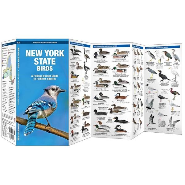 New York State Birds is a pocket-sized, folding naturalist guide. Distinctive colorful illustrations highlight the most commonly seen birds in New York. Printed on laminated material for durability, these handy guides are a great source of portable information.