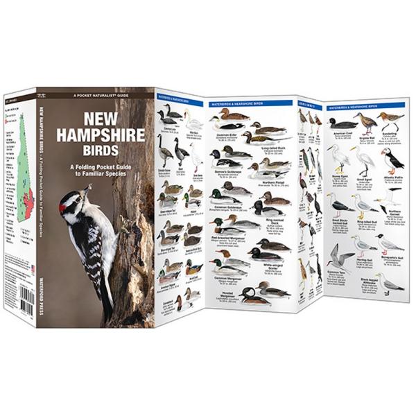 New Hampshire Birds is a pocket-sized, folding Pocket Naturalist guide highlighting the most commonly seen birds in New Hampshire. Laminated for durability, these handy guides are a great source of portable information for the backyard birdwatcher or the avian enthusiast.
