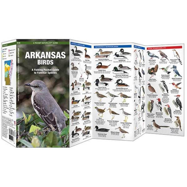 Arkansas Birds is a pocket reference guide printed on laminate material and folded for easy storage and retrieval. Color illustrations of common bird species and an inset map of popular Arkansas bird sanctuaries, helps to make this a must-have companion.