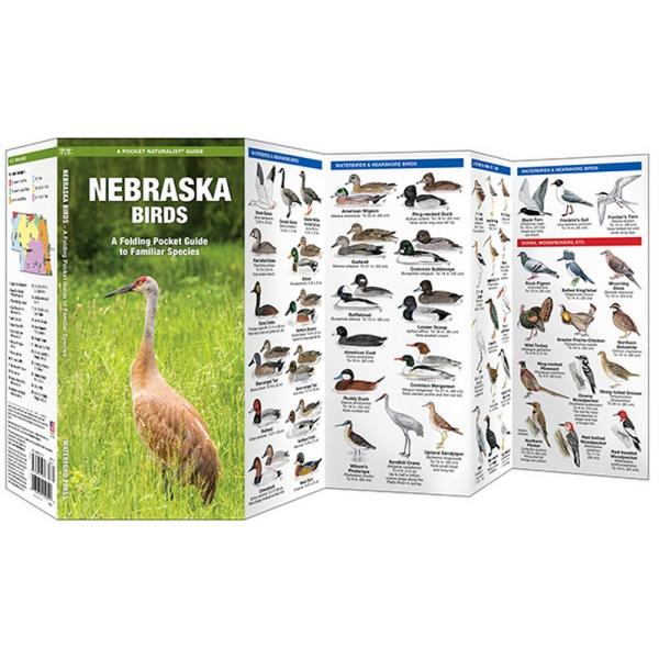 Nebraska Birds is a pocket-sized, folding Pocket Naturalist guide highlighting the most commonly seen birds in Nebraska. Laminated for durability, these handy guides are a great source of portable information for the backyard birdwatcher or the avian enthusiast.