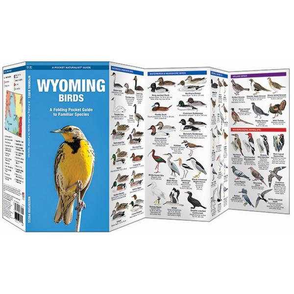 Wyoming Birds is a pocket-sized, folding nature guide highlighting the most commonly seen birds in Wyoming. Laminated for durability, these colorful illustrated guides are a great source of portable information. A map of popular birding spots in Wyoming.