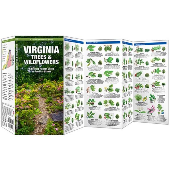Virginia Trees and Wildflowers is a pocket-sized, folding nature guide highlighting the most commonly seen trees and wildflowers in Virginia. Laminated for durability, these handy guides are a great source of portable information on the trail or in your backyard.