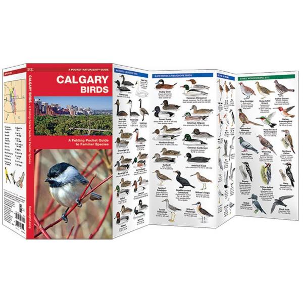 The familiar magpie is one of over 200 of species of birds inhabiting the diverse ecosystems found throughout the Calgary region. This beautifully illustrated guide highlights over 140 familiar and unique species and includes a map featuring prominent bird-viewing areas. Laminated for durability, this lightweight, pocket-sized folding guide is an excellent source of portable information and ideal for field use by visitors and residents alike.