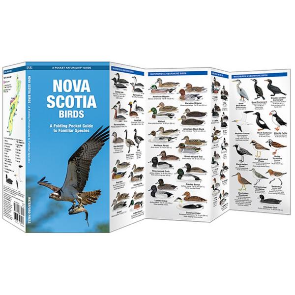 The peninsula and offshore islands that make up Nova Scotia – one of Canada's easternmost provinces – are home to more than 400 species of resident or migratory birds. With three distinctive coastlines with different characteristics, birding is excellent year-round. Spring and summer bring vireos, thrushes and warblers while fall visitors will see raptors in migration, huge flocks of seabirds as well as Auks, Loons and other seabirds. This portable folding guide includes illustrations and descriptions of 140 species and a back-panel map featuring the top bird viewing hotspots. A handy field reference for birders building their life-lists and the perfect take-along guide for visitors and nature enthusiasts of all ages.