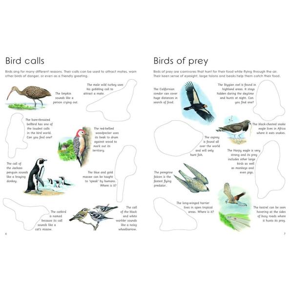Learn all about the different types of bird - with fantastic reusable easy-to-peel stickers illustrated by leading natural history artists. You can have fun finding out about birds in the interactive pages - discover which is the biggest, the smallest, and which one has the loudest song. Here are songbirds, sparrows, woodpeckers, owls, ostriches, parrots, penguins and hummingbirds. Find out which birds cannot fly, which can speak, and which bird flies halfway around the globe every year. With fun themes to explore, children will enjoy spotting the differences and similarities between the species, as they decide which sticker belongs where. Simple captions present fascinating facts, such as which bird has the longest wingspan, and why the scarlet ibis is red. The stickers are reusable so children can repeat the process time and time again, or use them to make their own sticker books and games.
