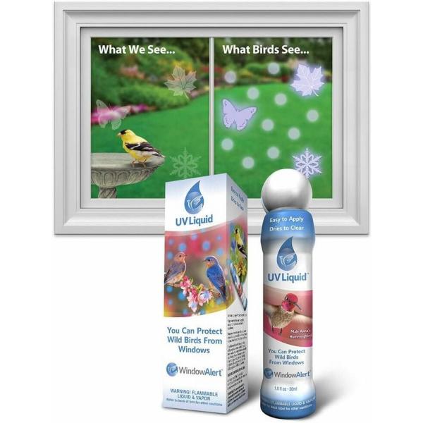 Alerts birds to the presence of glass. Reflects ultraviolet sunlight. Easy to apply (use bingo marker to make dots on the glass). Dries to nearly clear. Now consumers can protect their entire window against bird strikes. For best results, apply with Window Alert UV Decals. 1.69 Fl oz. Will not ship to Canada.