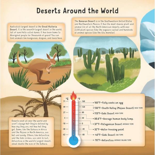 A one-of-a-kind board book that features dozens of adorable illustrations, educational captions, vocabulary words, cut-out accents, and hidden chambers to be revealed, Discovering the Amazing World of the Desert will delight kids while they learn all about the desert environment and its important role in nature!